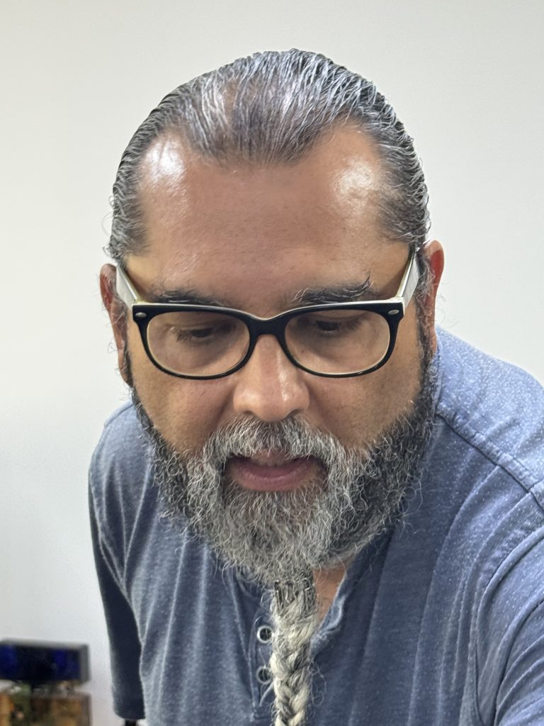 Y la vida de Miguel Ángel Gómez nace cada día para recorrer el campus de oficina en oficina, donde lo requieran, sabiendo que todos se inquietan pero no se atreven a preguntar por su barba y su extensión que finamente ensortijada le quiere llegar a su pecho.