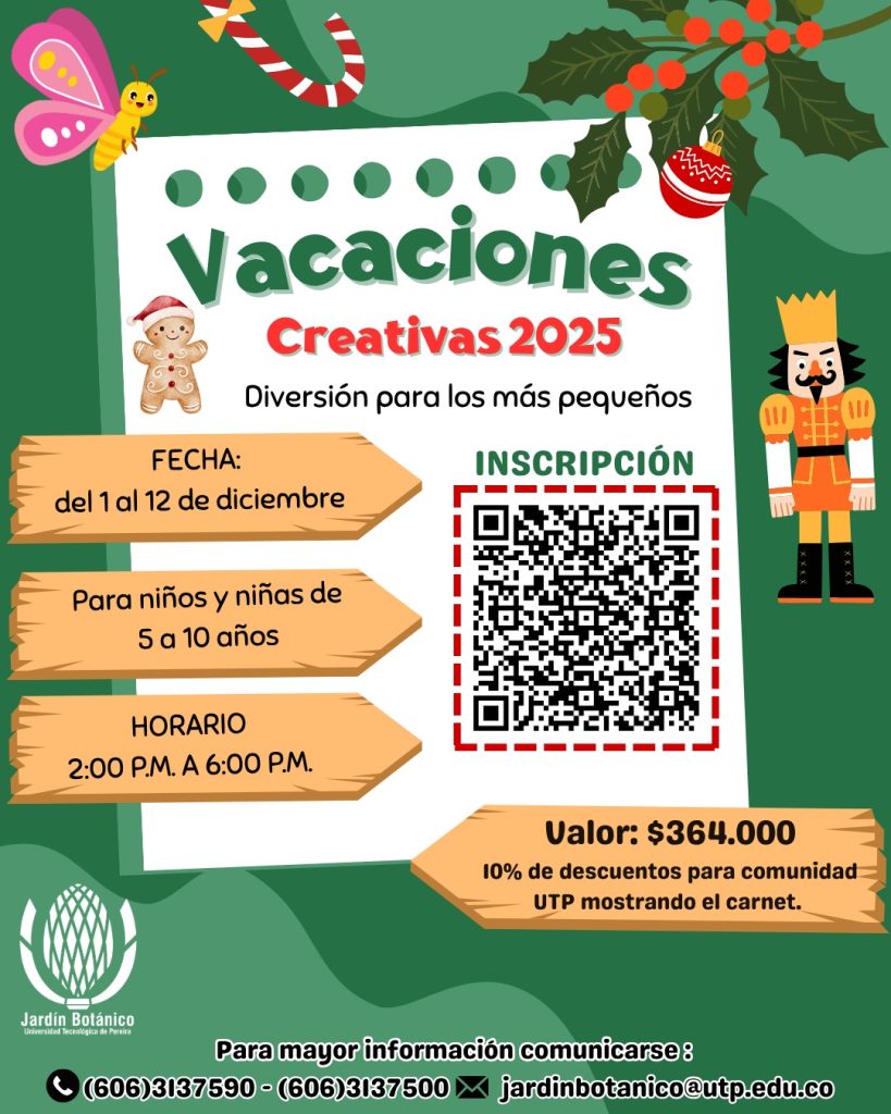 Del 1 al 12 de diciembre, el Jardín Botánico de la UTP volverá a recibir a niños entre 5 y 10 años en sus Vacaciones Creativas 2025, una experiencia pensada para descubrir la naturaleza desde el juego, el arte y la curiosidad.