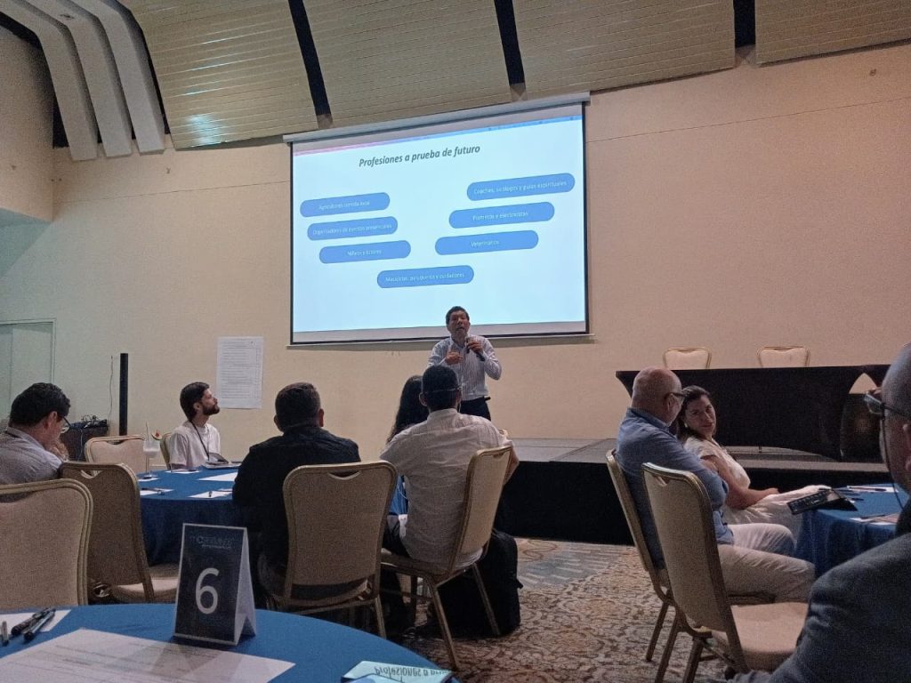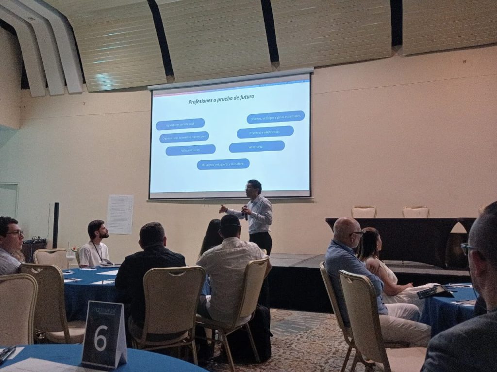 De igual forma, participó en espacios tipo coaching, donde los asistentes desarrollaron soluciones para problemáticas nacionales. Sobre esta dinámica, el docente comentó que “se compartieron experiencias y formas de solucionar problemáticas del país, dividiéndose en pequeños grupos para trabajar retos reales”.