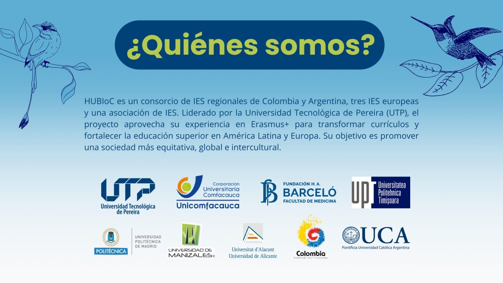 HUBIoC, es un HUB que interconecta y se encuentra financiado por el programa Erasmus+ Capacity Building in Higher Education, reúne a universidades de Colombia, Argentina y Europa en una alianza que busca transformar la Internacionalización del Currículo (IoC) como eje estratégico de la educación superior contemporánea. En un contexto marcado por los desafíos del mundo postpandemia, la iniciativa propone renovar prácticas pedagógicas, ampliar el acceso a recursos formativos y promover la equidad, la innovación y el intercambio intercultural.