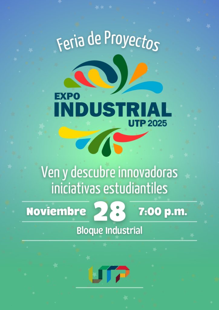El Programa de Administración Industrial de la Facultad de Tecnología extiende una invitación a toda la comunidad universitaria para participar en la segunda edición de Expo Industrial, que se realizará el viernes 28 de noviembre a las 7:00 p. m. en el Bloque 5 Industrial.