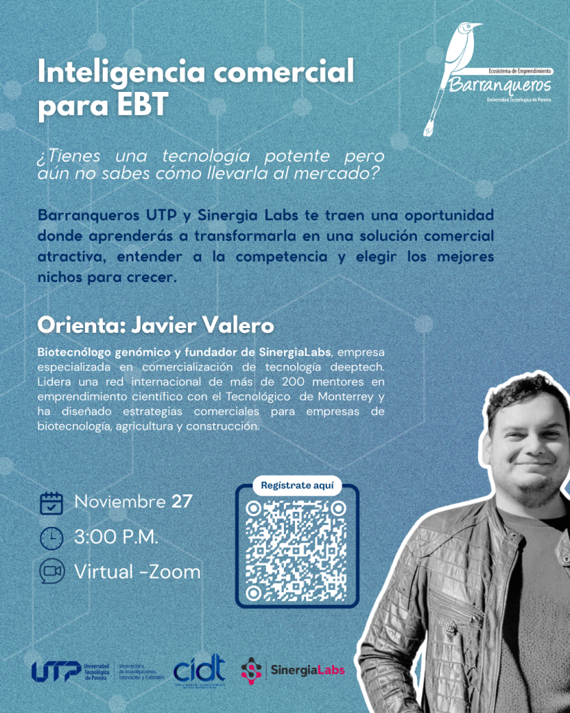 En esta sesión se descubrirá cómo convertir tu tecnología en una propuesta comercial clara y atractiva, cómo entender a los competidores para competir con inteligencia y cómo detectar los nichos donde realmente hay oportunidades de crecimiento.