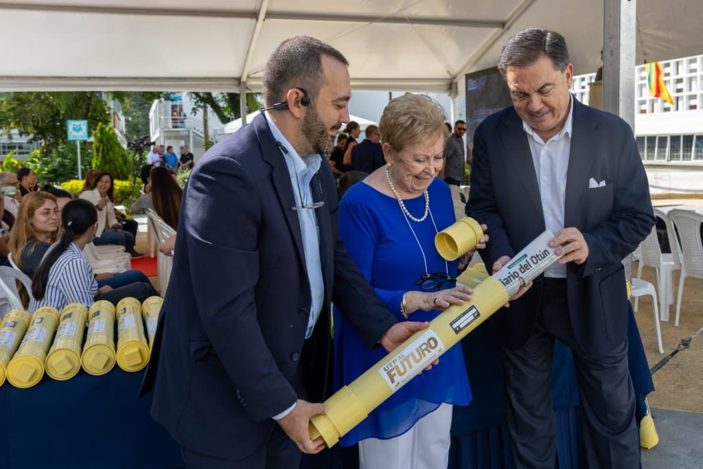 La ceremonia también rindió homenaje a Jorge Roa Martínez, cuyo legado continúa inspirando el crecimiento académico, científico y humano de la institución. El acto contó con la presencia de su hija, Patricia Roa, quien afirmó: “Para nosotros, como familia, es un honor ver cómo la Universidad sigue construyendo sobre el legado que dejó mi padre. Él soñó con una institución dinámica, humana y en permanente transformación, y hoy vemos que ese sueño continúa vivo en cada proyecto y en cada generación de estudiantes”.