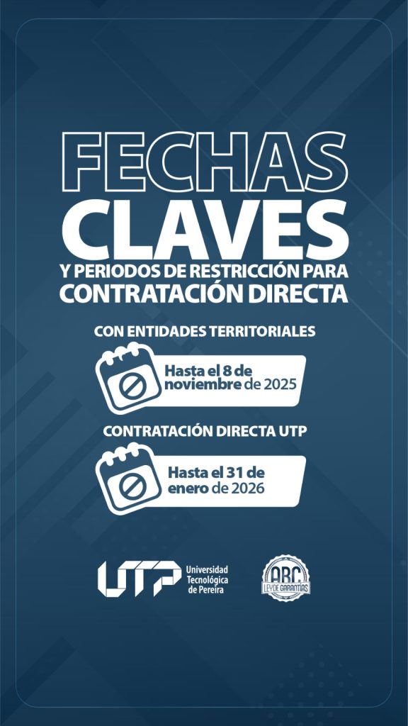En cumplimiento de la Ley 996 de 2005 (Ley de Garantías Electorales), la Universidad Tecnológica de Pereira ha iniciado la preparación institucional para dar cumplimiento a las restricciones contractuales que regirán durante los periodos previos a las elecciones al Congreso de la República y a la Presidencia de la República en 2026. Esta normativa nacional busca garantizar la transparencia, la equidad en la contienda electoral y la neutralidad de las entidades públicas. En este contexto, se destaca la restricción a la contratación directa, desde la última semana de enero y hasta que finalicen las elecciones nacionales, esta modalidad de contratación estará limitada.