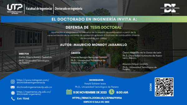 Defensa de tesis doctoral: “Aportación al diagnóstico no intrusivo de la presión de combustión a partir de la caracterización de la corriente de ionización aplicado a motores de combustión interna de encendido por chispa»