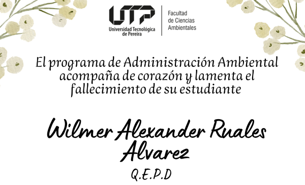 Condolencias por el fallecimiento del estudiante de Administración Ambiental, Wilmer Alexander Ruales Álvarez