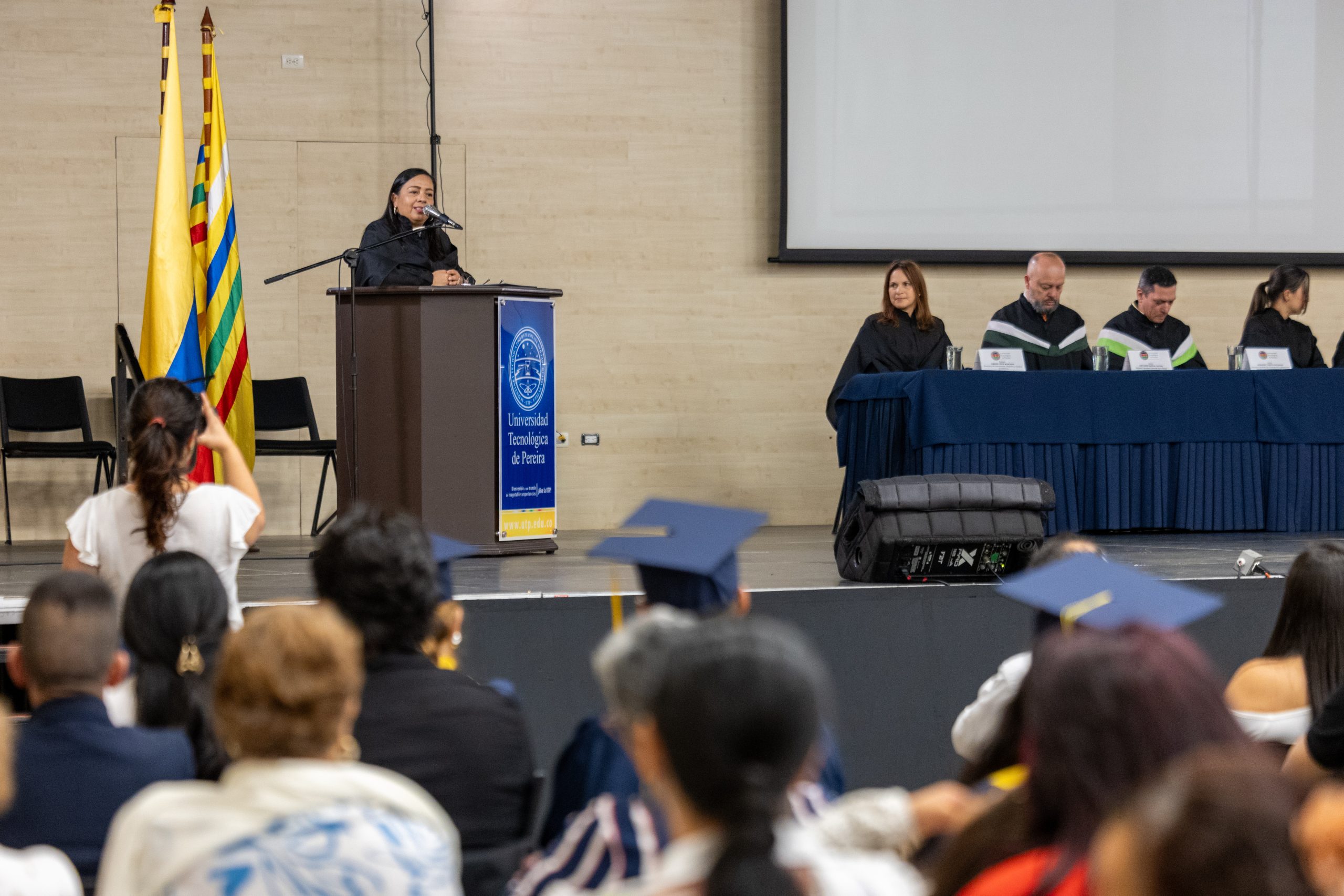 Con un emotivo mensaje de felicitación, la Representante de los Egresados ante el Consejo Superior de la Universidad Tecnológica de Pereira, Paula Villa Sánchez, hizo parte de la ceremonia general de grados que entrega 915 nuevos graduados de pregrado y posgrado.