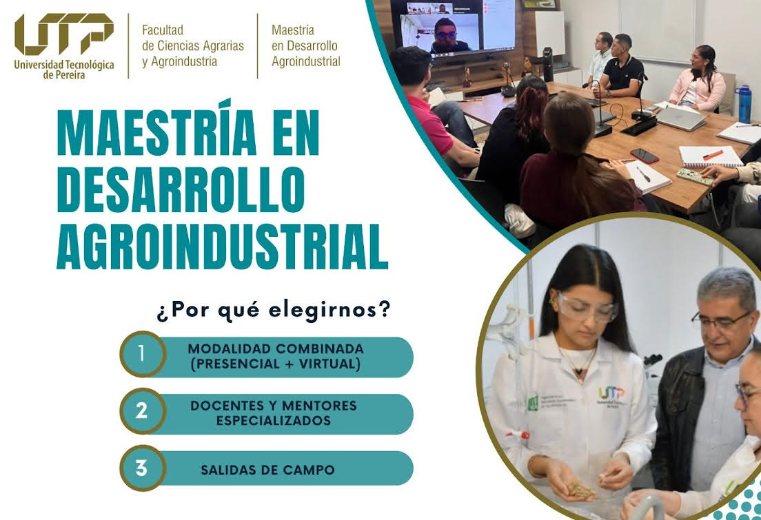 La Facultad de Ciencias Agrarias y Agroindustria de la Universidad Tecnológica de Pereira invita a inscribirte en la Maestría en Desarrollo Agroindustrial.