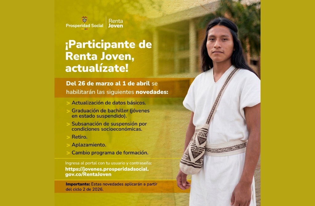 La oficina Renta Joven de la Universidad Tecnológica de Pereira informa que desde el 26 de marzo hasta el 01 de abril del 2026, los jóvenes podrán realizar la creación de las siguientes novedades en el portal de Renta Joven. Es importante tener en cuenta la fecha de apertura y las novedades que pueden realizar.Novedades: […]