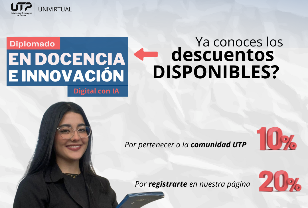 La Universidad Tecnológica de Pereira, a través de Univirtual, anuncia que están abiertas las inscripciones al Diplomado en Docencia e Innovación Digital con IA, un programa que fortalece la práctica docente en la educación superior y que ahora ofrece a la comunidad un descuento especial en la matrícula. Este beneficio busca facilitar el acceso a una formación que ya está […]