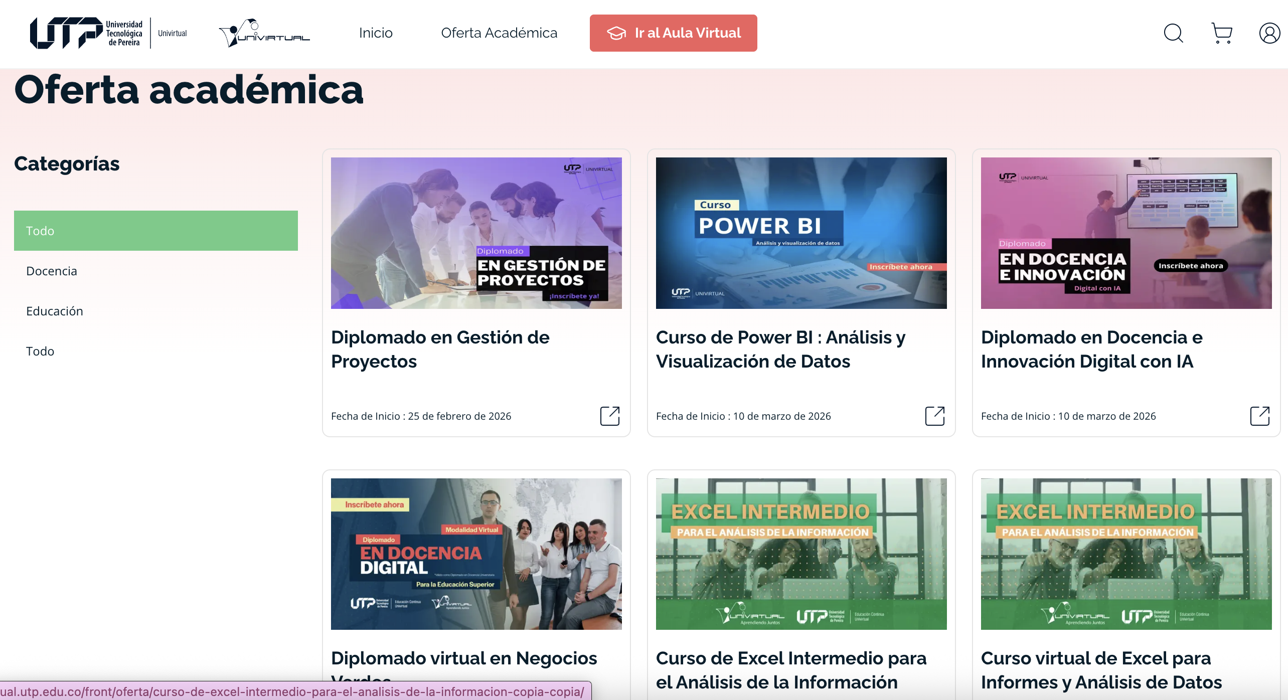 La Universidad Tecnológica de Pereira, a través de Univirtual, avanza hacia una nueva etapa en la formación en línea con el lanzamiento de su nuevo portal de educación continua, un espacio donde la tecnología, la innovación y el conocimiento se integran para transformar la experiencia de aprendizaje.