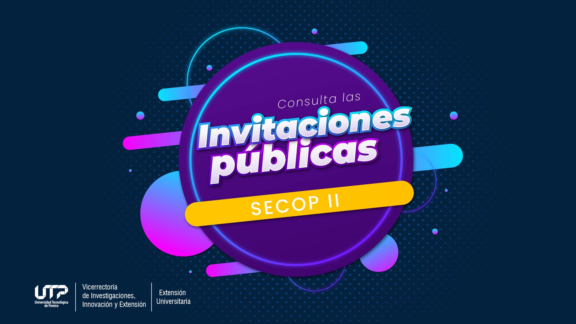 Desde la Vicerrectoría de Investigaciones, Innovación y Extensión compartimos a toda la comunidad académica y administrativa de la Universidad, las invitaciones públicas que se encuentran vigentes en la plataforma SECOP II a la cual podrán postularse una vez revisados los requisitos. En el recuadro adjunto, encontrarán la siguiente información: el contratante, el número del proceso […]